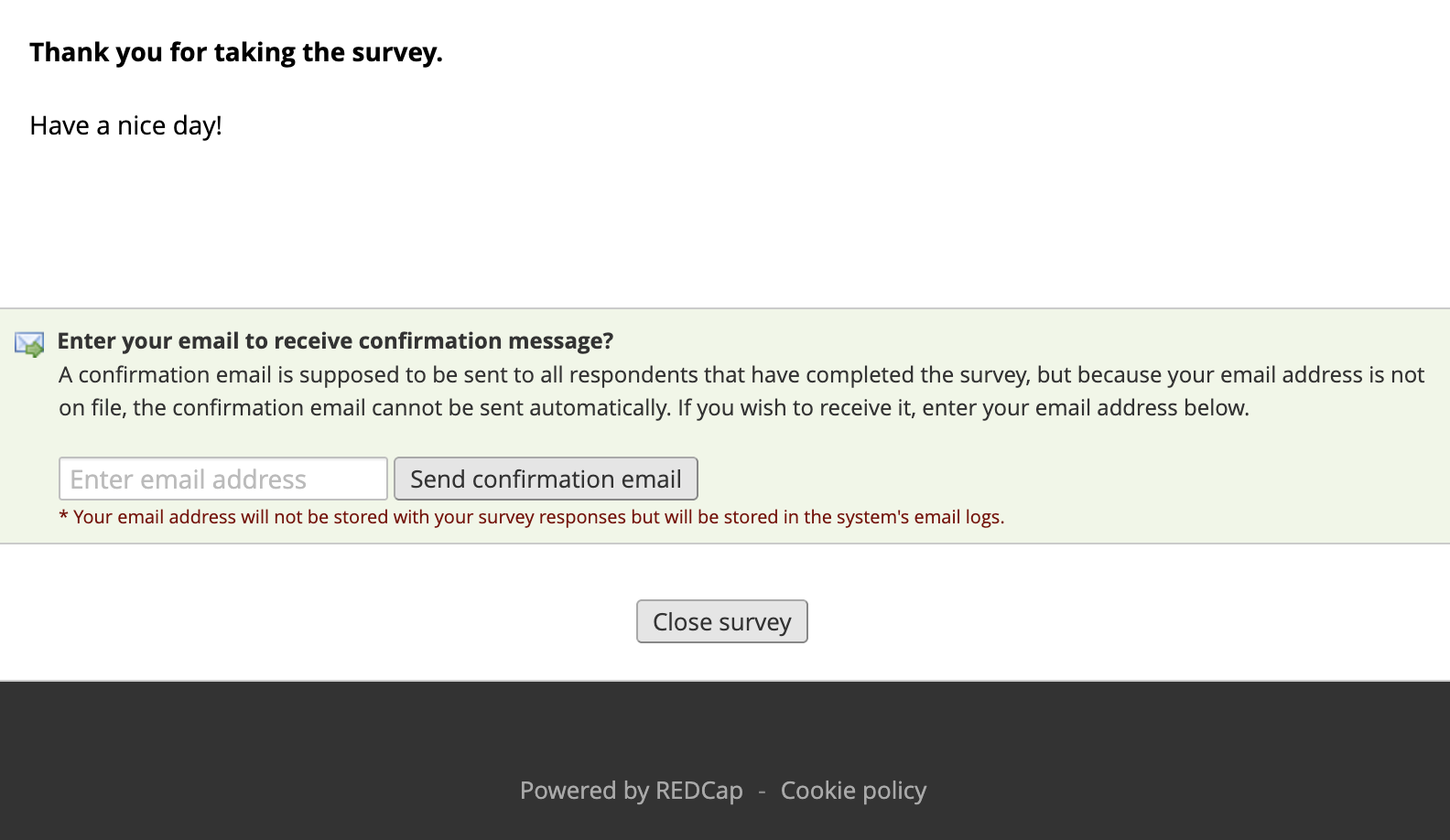 | What the participant sees next depends on if their email address has already been collected in the REDCap project: